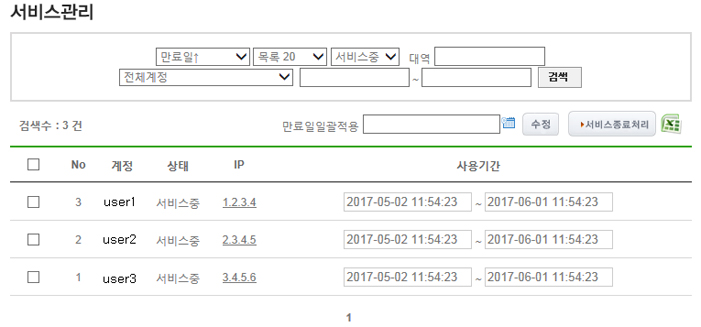 - 각각의 사용자에게 IP할당 및 사용기간을 설정할수 있는 페이지를 제공합니다,
