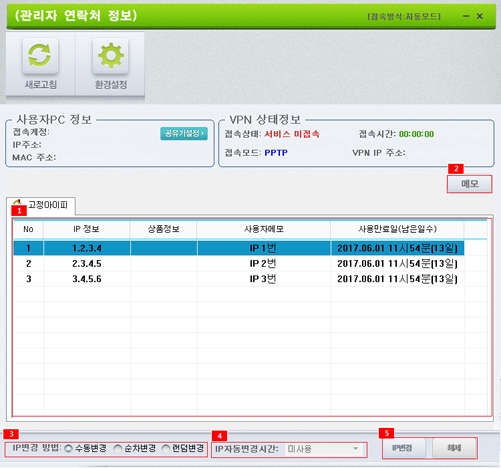 5. 사용자단에서는 "IP 변경"버튼과 "해제" 버튼으로 손쉽게 IP변경이 가능하며, VPN상태 정