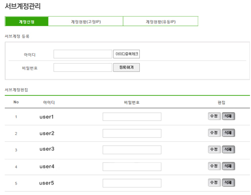 - 사용자의 계정 패스워드 등록 및 관리할 수 있는 페이지를 제공합니다.